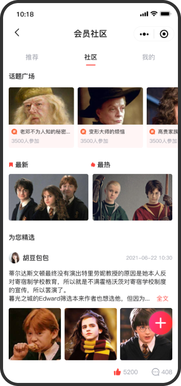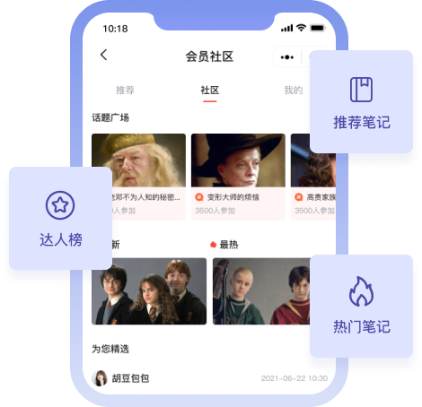 达人榜、推荐笔记、话题广场、热门笔记、精选笔记等多板块对会员进行内容种草。