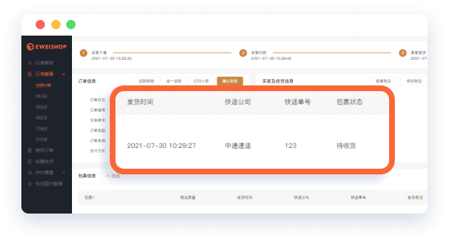 聚水潭软件可同步EWEISHOP订单的发货信息、发货状态和物流信息