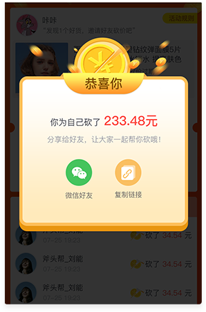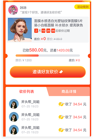 “砍价免费拿”成功吸引用户关注,持续拉新并在微信生态内获得流量,砍价功能助力活动信息快速传播,有效获取目标用户。