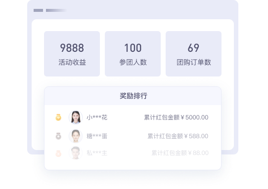 ·实时查看活动订单数/拼中订单数/发放奖励数/参与会员数等数据