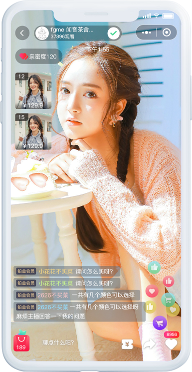 无需借助任何软件,店铺助手小程序助力主播轻松开播;主播端显示用户评论和动态信息,与观众实时互动交流。